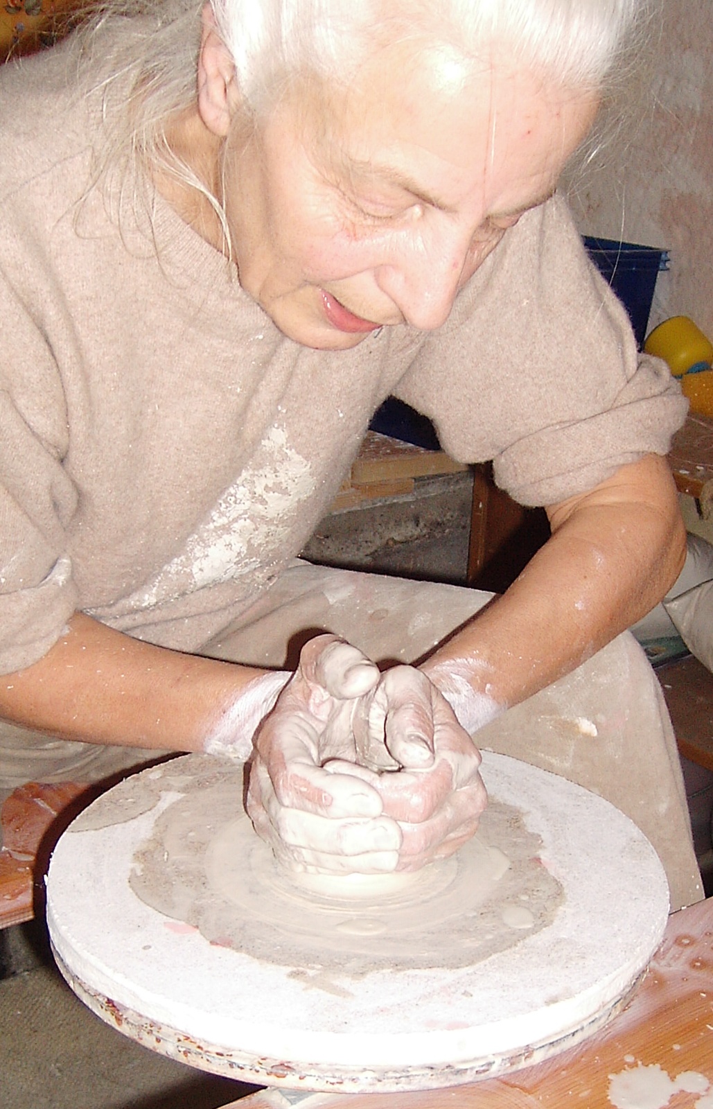 Sie, diese befreundete Künstlerin, töpferte an der Scheibe. Wir, die unbeleckten Greenhorns, saßen vor einem Klumpen roten Tons und sinnierten darüber, welche Form wir dem Ding wohl geben sollten...